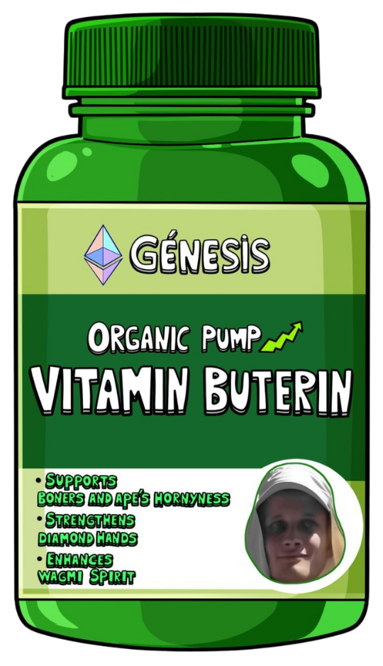 Powered by a proprietary blend of Diamond Hands, FOMO Extract, and WAGMI Whiff, Vitamin Buterin fuels your crypto journey with meme-driven energy and unstoppable conviction.